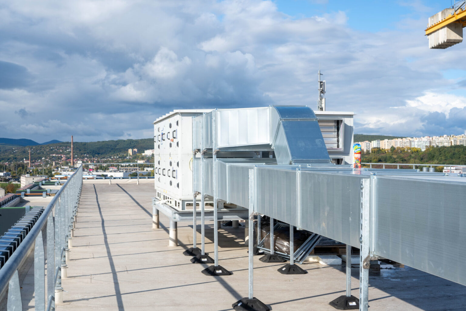 Budova je rozdelená na viac prevádzkových zón, preto sme pre AB časť objektu navrhli samostatný systém chladenia a odvetrania. Tento prístup umožňuje prispôsobovať výkon konkrétnym požiadavkám jednotlivých častí, eliminuje zbytočné straty energie a zjednodušuje údržbu. Výsledkom je riešenie, ktoré je nielen funkčné a spoľahlivé, ale aj ekonomicky a prevádzkovo efektívne.